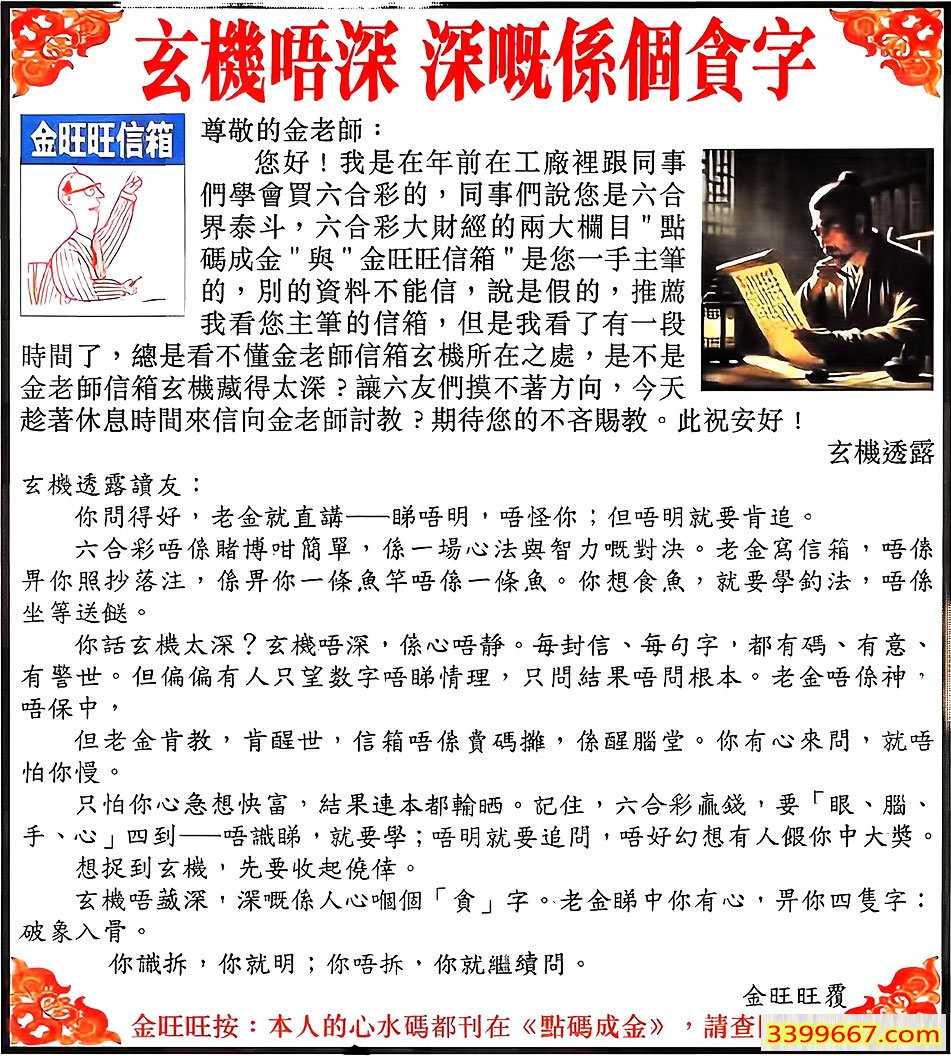092期:金旺旺信箱彩民推荐→→《玄機唔深 深嘅係個貪字》