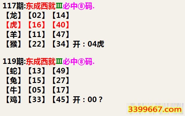 119期:东成西就Ⅲ必中⑧码