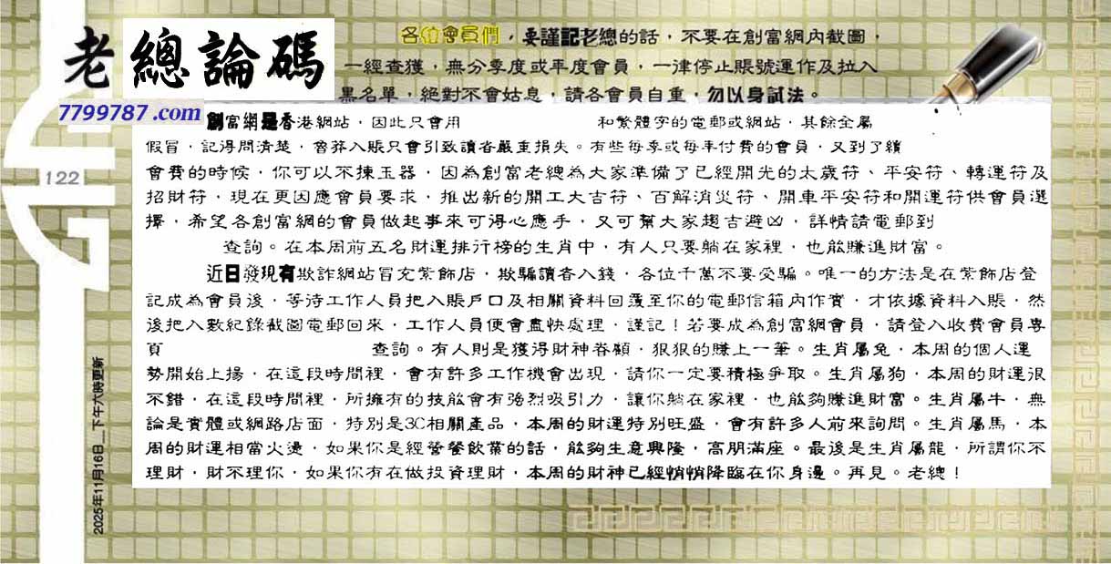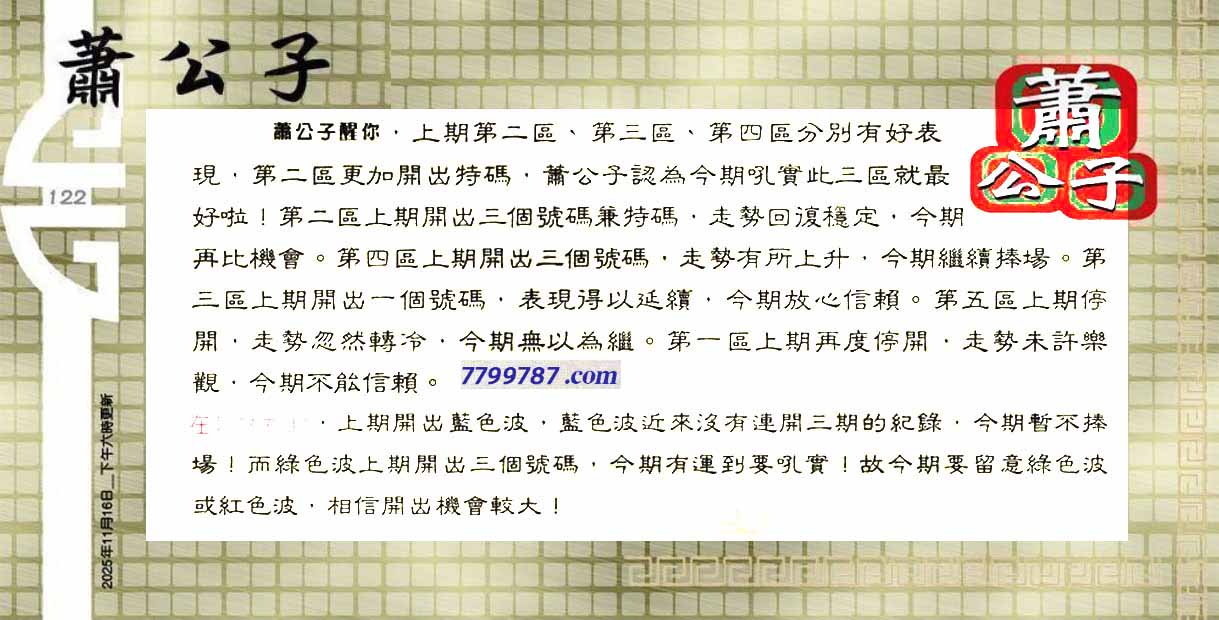 122期:六合皇金句/老总论码/萧公子/林大师/五行夺码/老总信箱截
