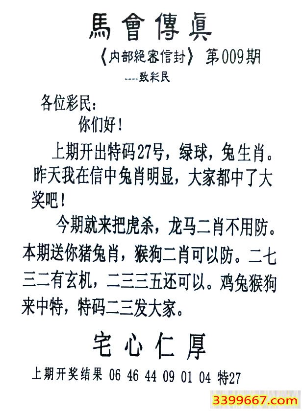 009期:首发推荐:≮馬會傳眞≯→(香港正版)