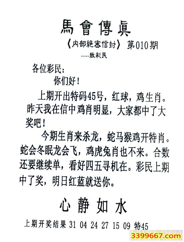 010期:首发推荐:≮馬會傳眞≯→(香港正版)