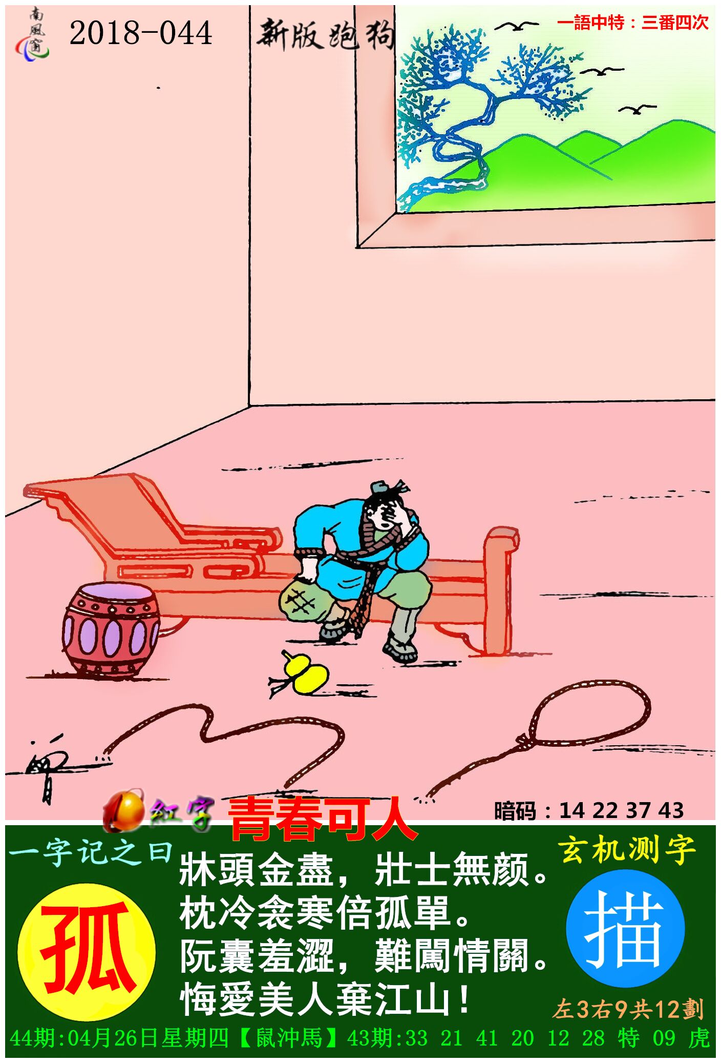 044期新版跑狗一字記之曰:【孤】