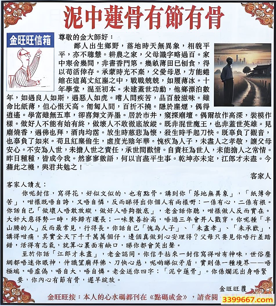 097期:金旺旺信箱彩民推荐→→《泥中蓮骨節有骨》