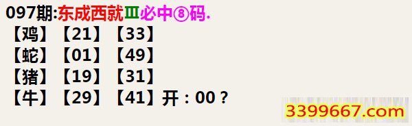 097期:东成西就Ⅲ必中⑧码