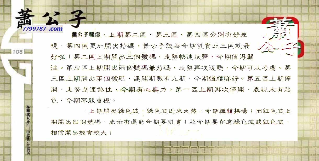 108期:六合皇金句/老总论码/萧公子/林大师/五行夺码/老总信箱截