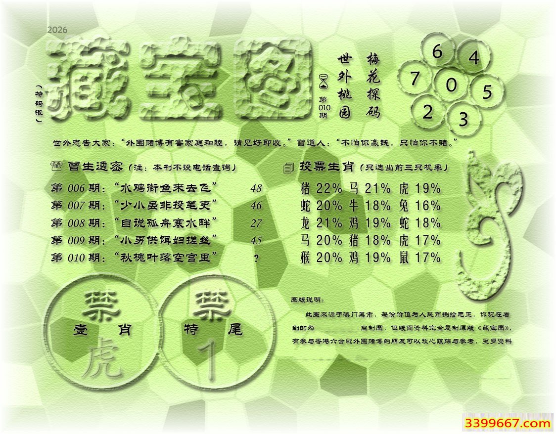 010期藏寶圖 新:同向尘中叁拾载 老:秋槐叶落空宫里 禁:虎 禁:1尾