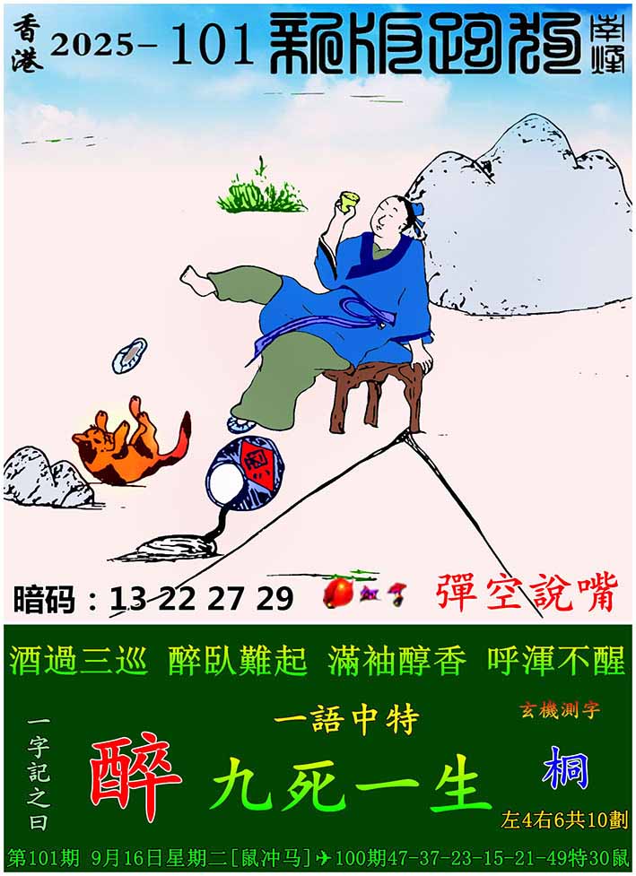 101期:新版跑狗一字記之曰【醉】 玄機測字:【桐】