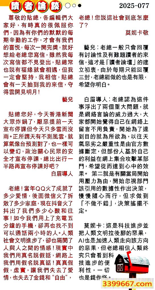 第零七七期讀者論談