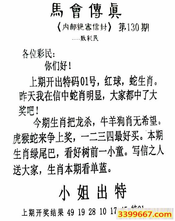 130期:首发推荐:≮馬會傳眞≯→(香港正版)