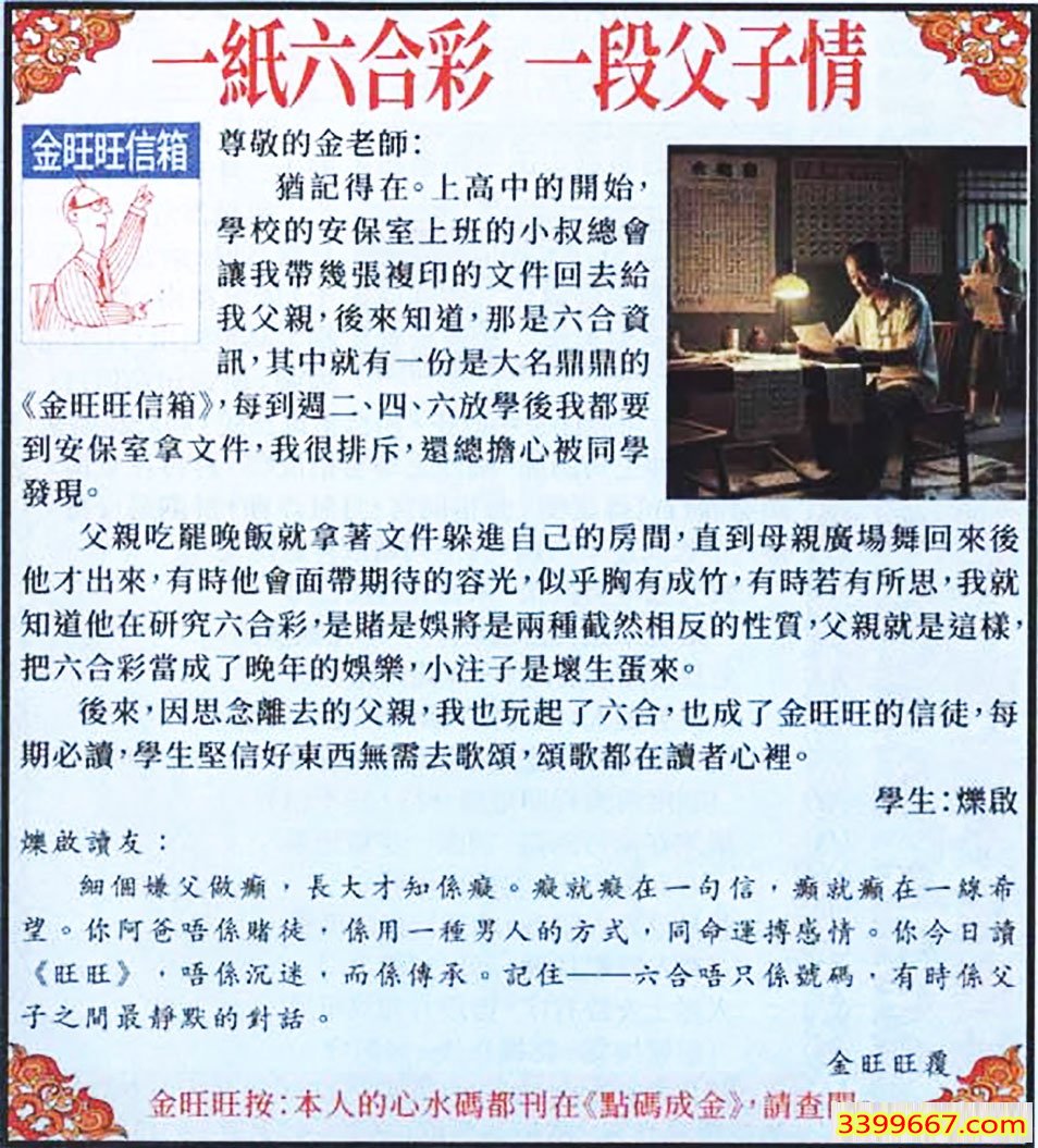 014期:金旺旺信箱彩民推荐→→《一紙六合彩 一段父子情》