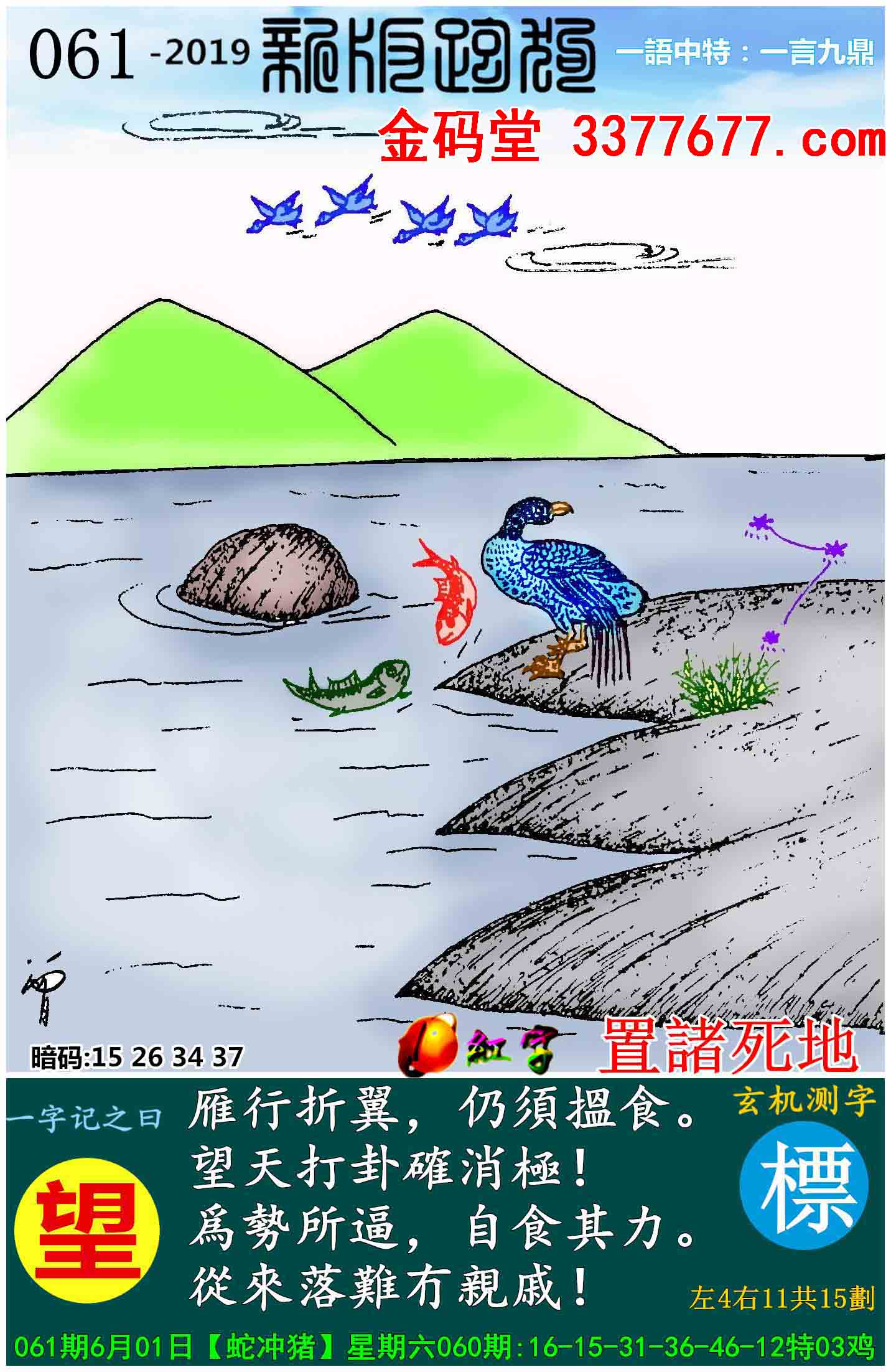 061期新版跑狗一字記之曰:【望】