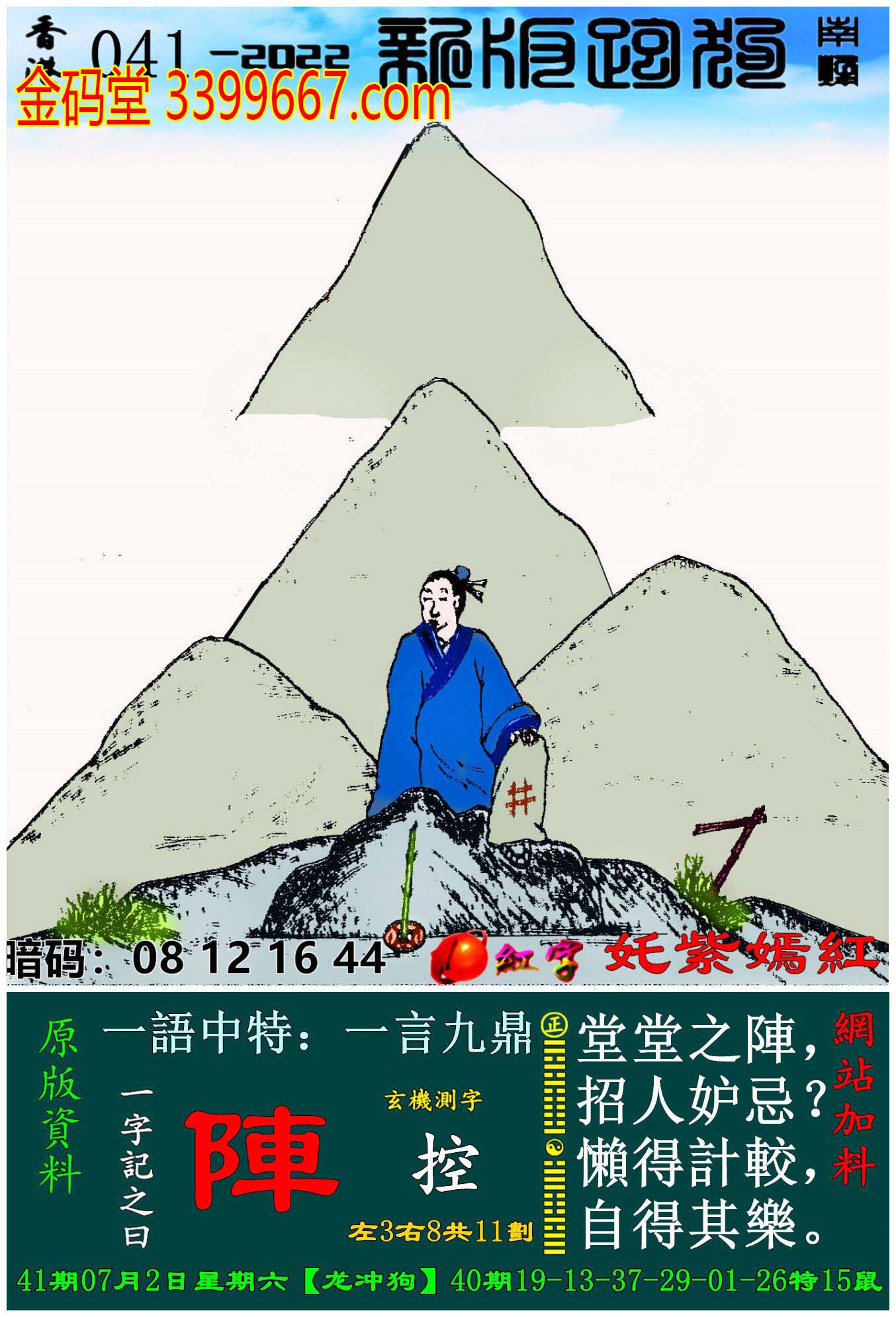 041期新版跑狗一字記之曰:【陣】