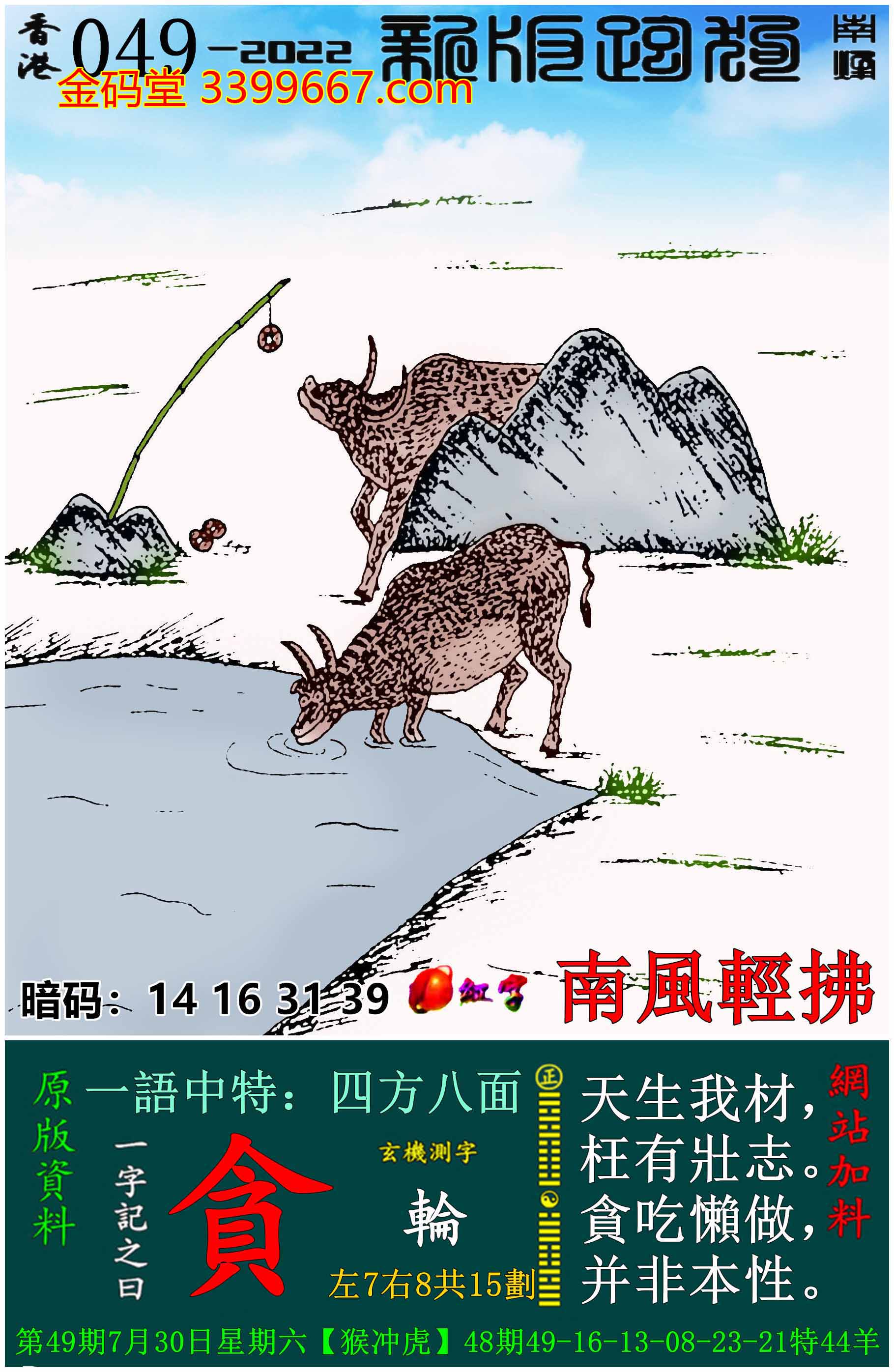 049期新版跑狗一字記之曰:【貪】