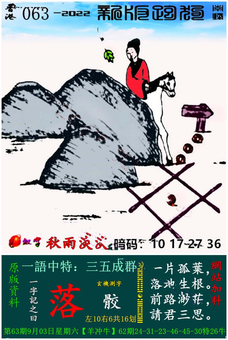 063期新版跑狗一字記之曰:【落】
