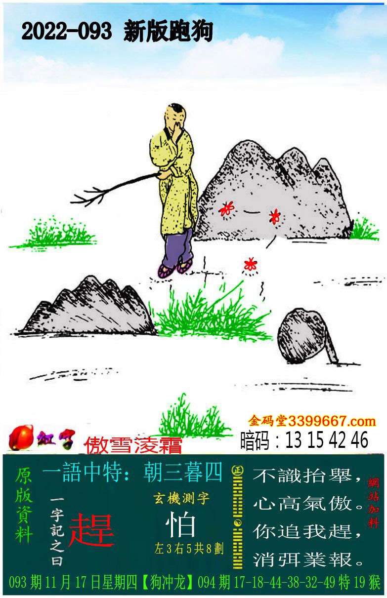 093期:新版跑狗一字記之曰【趕】玄機測字:《怕》