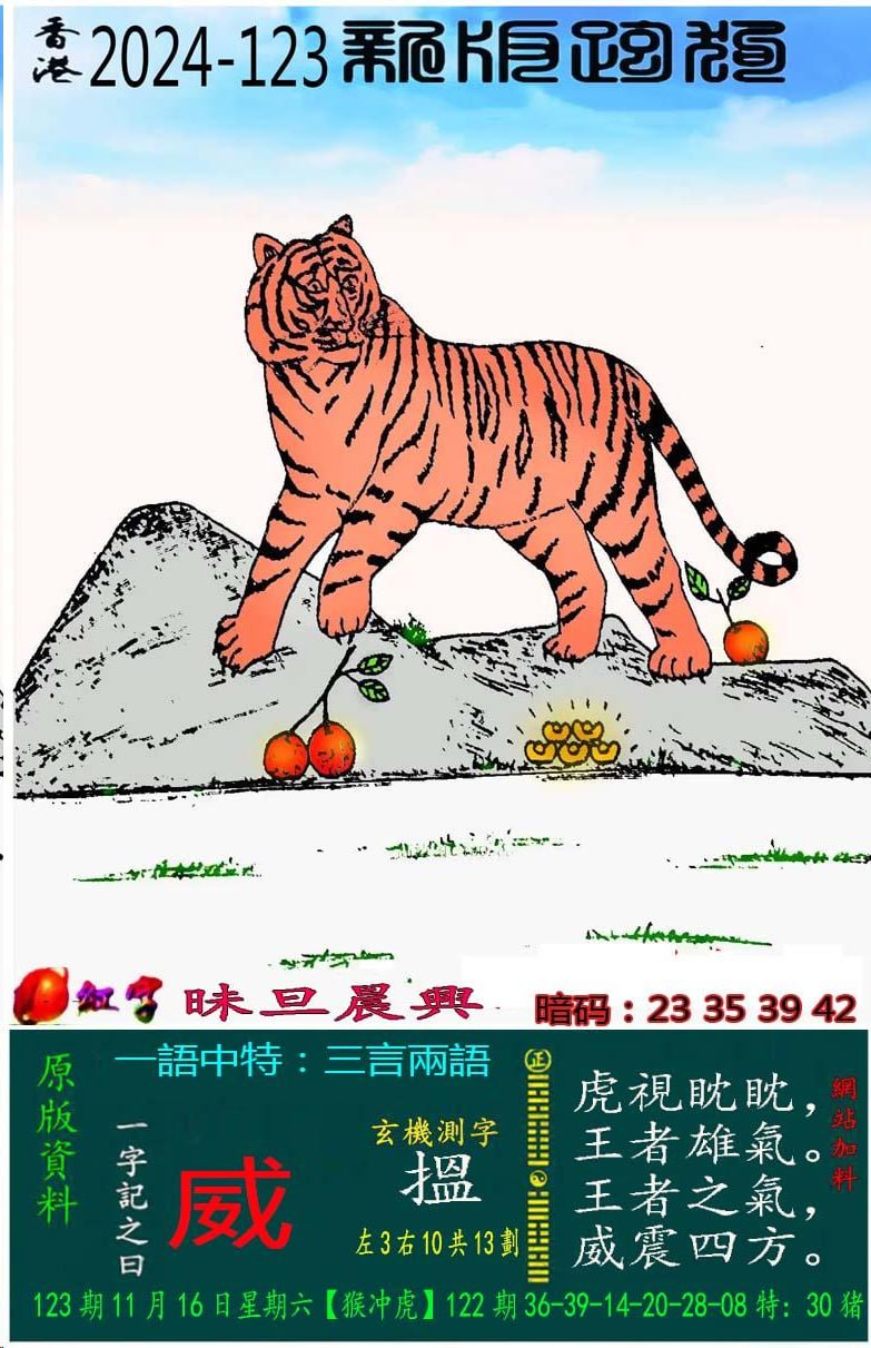 123期:新版跑狗一字記之曰【威】 玄機測字:【搵】