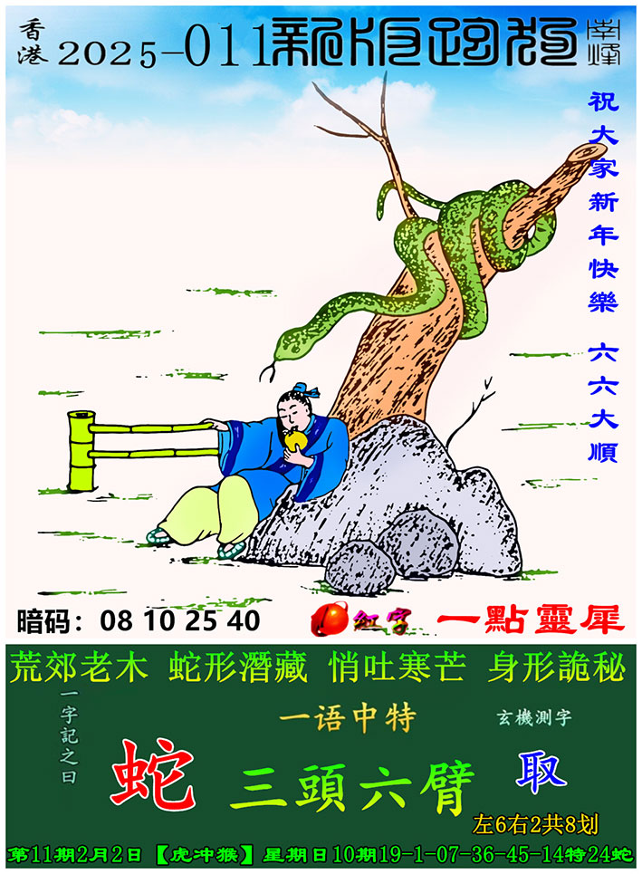 011期:新版跑狗一字記之曰【蛇】 玄機測字:【取】