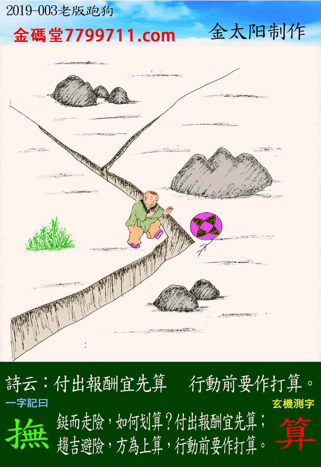 003期:老版跑狗一字記之曰【撫】玄機測字《算》