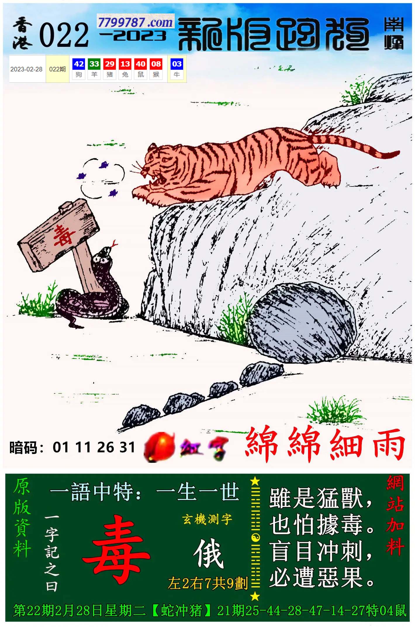 095期新版跑狗一字記之曰:【毒】