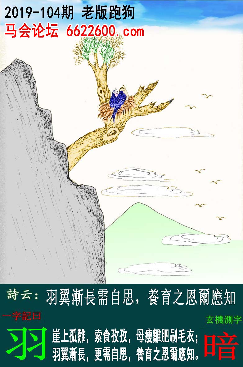 主题 : 104期:老版跑狗一字記之曰【羽】玄機測字《暗》