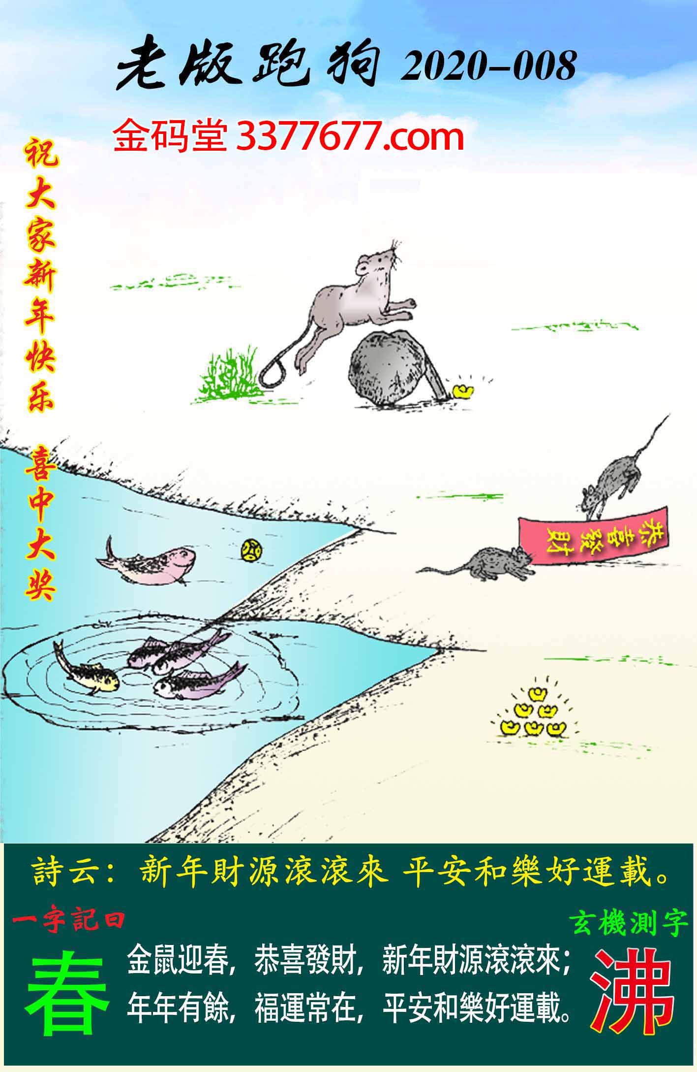 金鼠迎春,恭喜發財,新年財源滾滾來;