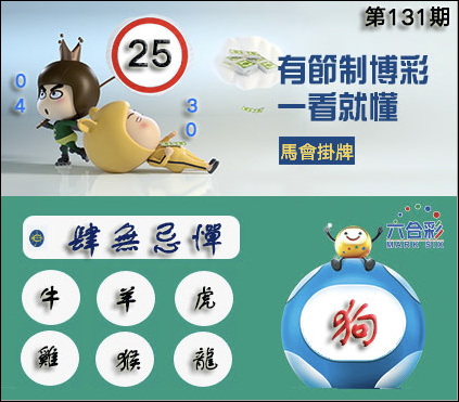 131期正版彩图挂:25 爆:狗 挂牌成语:肆无忌惮 挂牌出肖:牛羊虎鸡猴龙