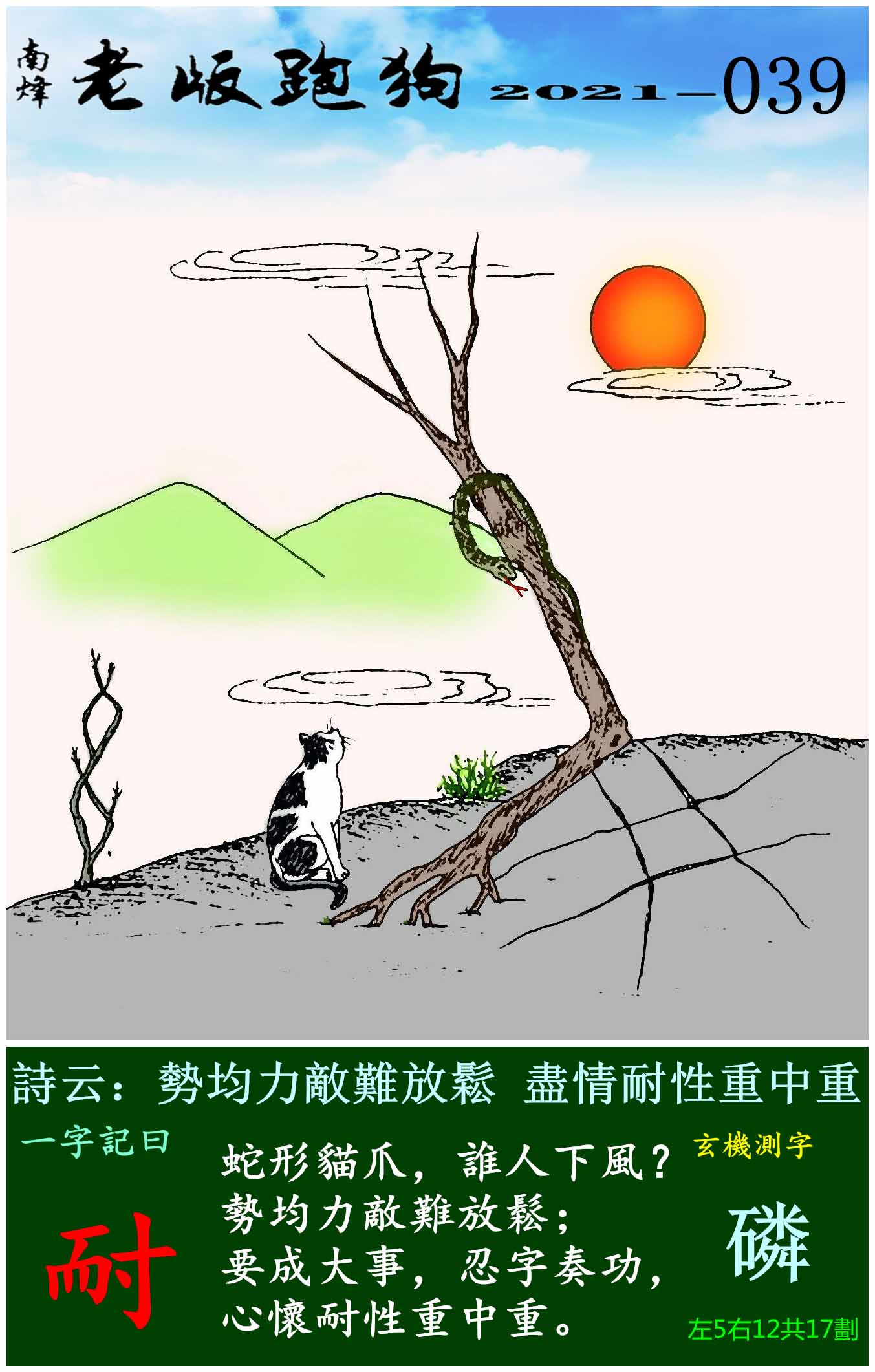 039期老版跑狗一字記之曰:【耐】
