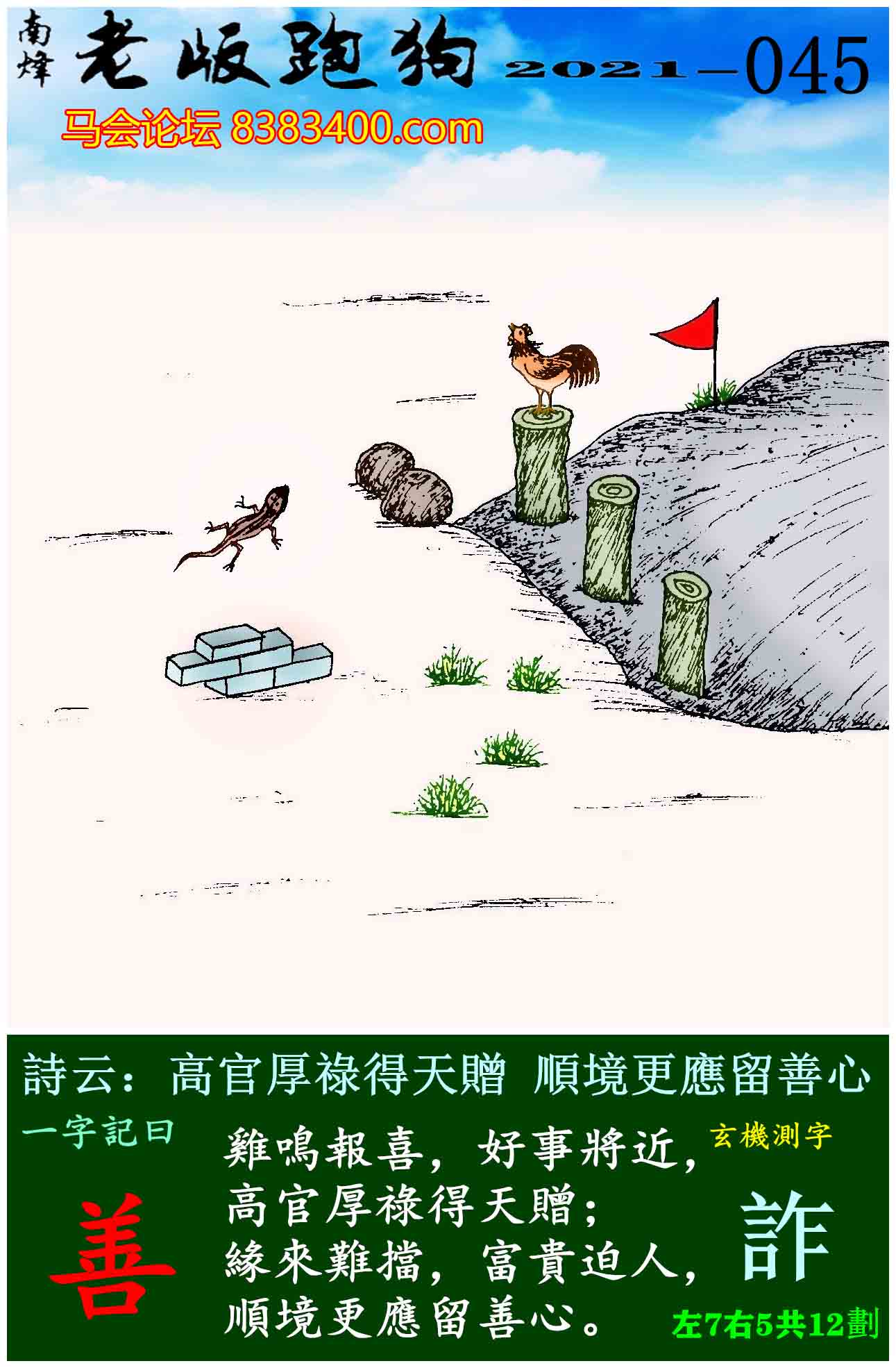 主题 : 045期老版跑狗一字記之曰:【善】玄機測字:《詐》