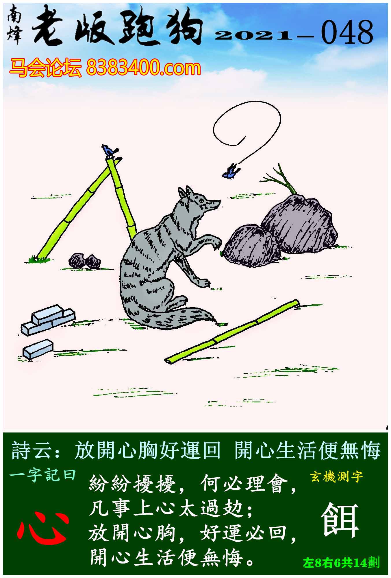 主题 : 048期老版跑狗一字記之曰:【心】玄機測字:《餌》