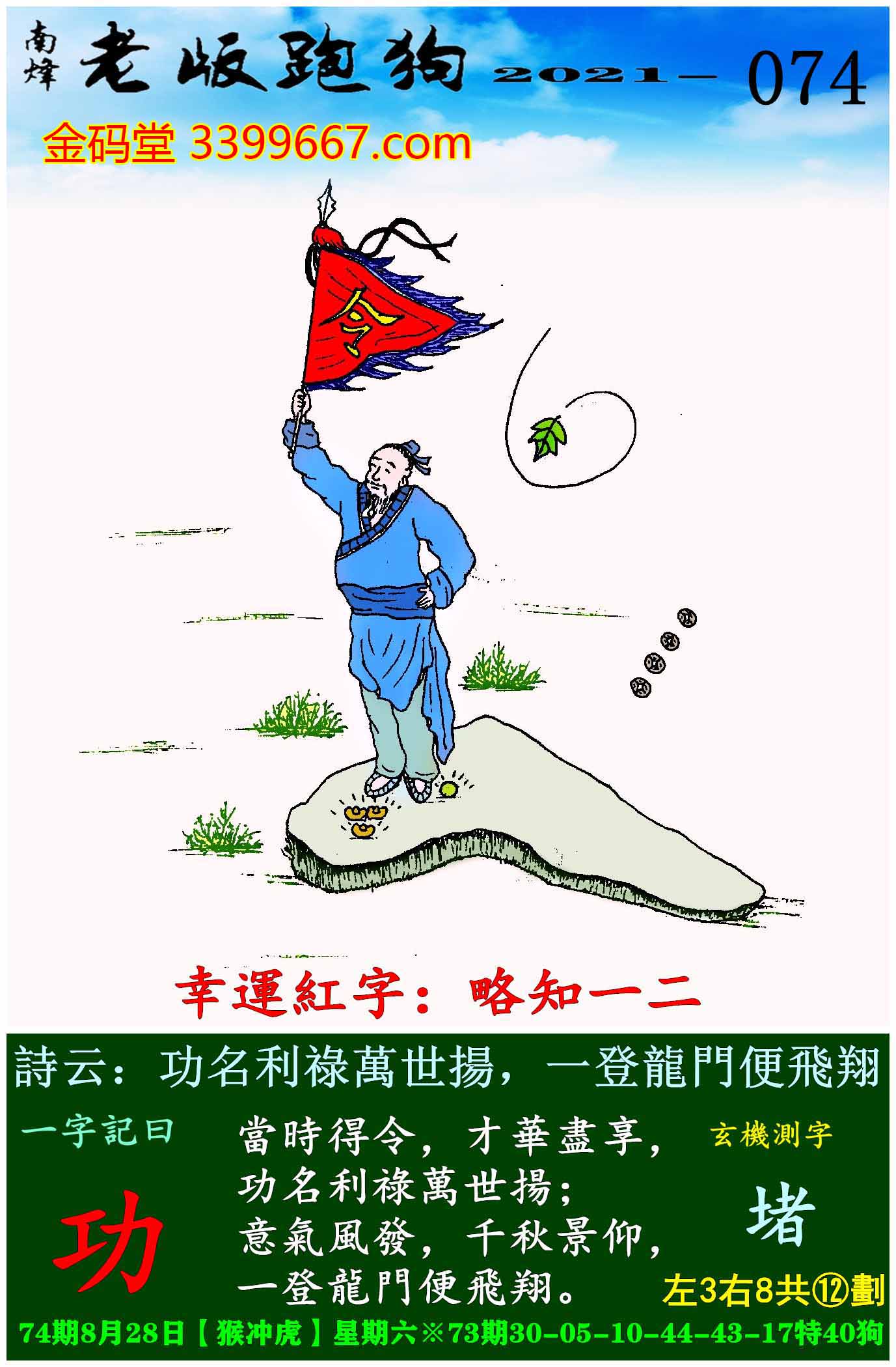 主题 : 074期老版跑狗一字記之曰:【功】玄機測字:《堵》