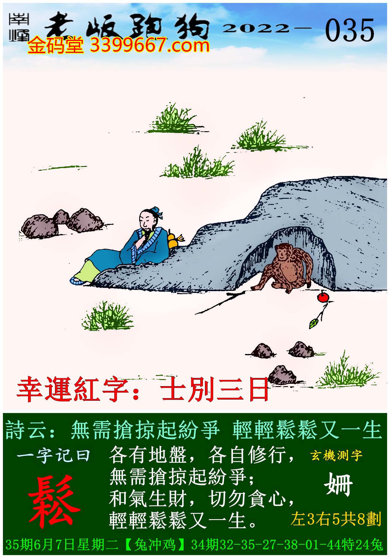 主题 : 035期老版跑狗一字記之曰:【鬆】玄機測字:《姍》