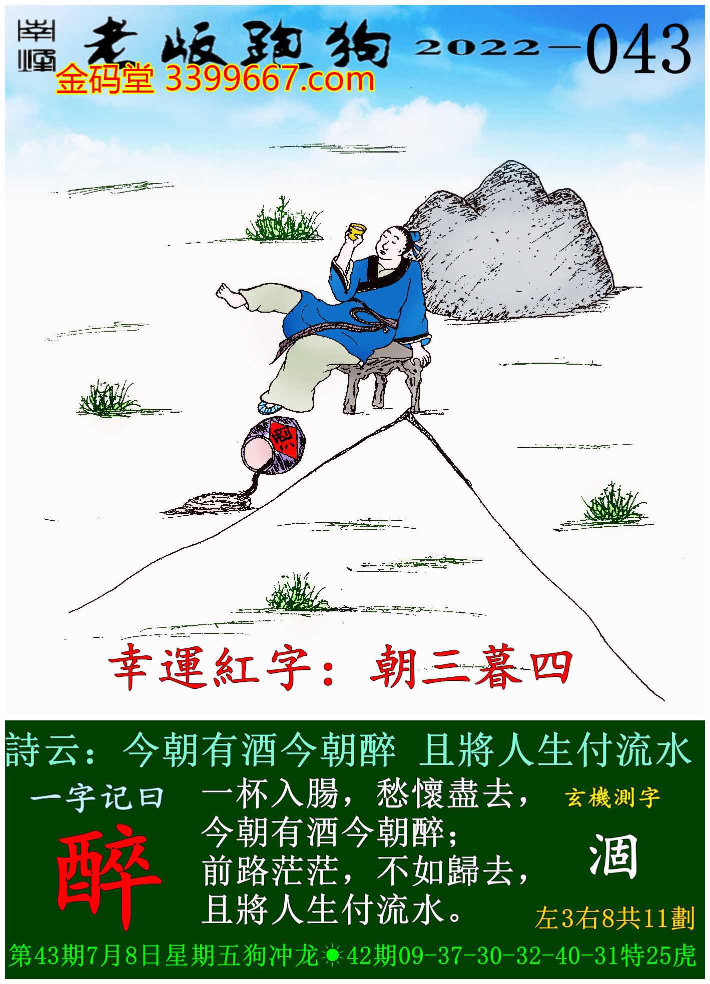 043期老版跑狗一字記之曰:【醉】