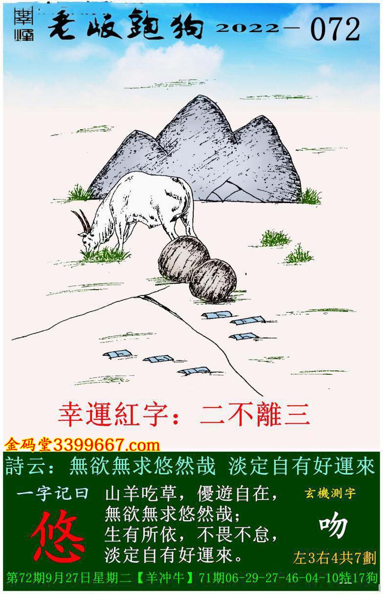 072期老版跑狗一字記之曰:【悠】