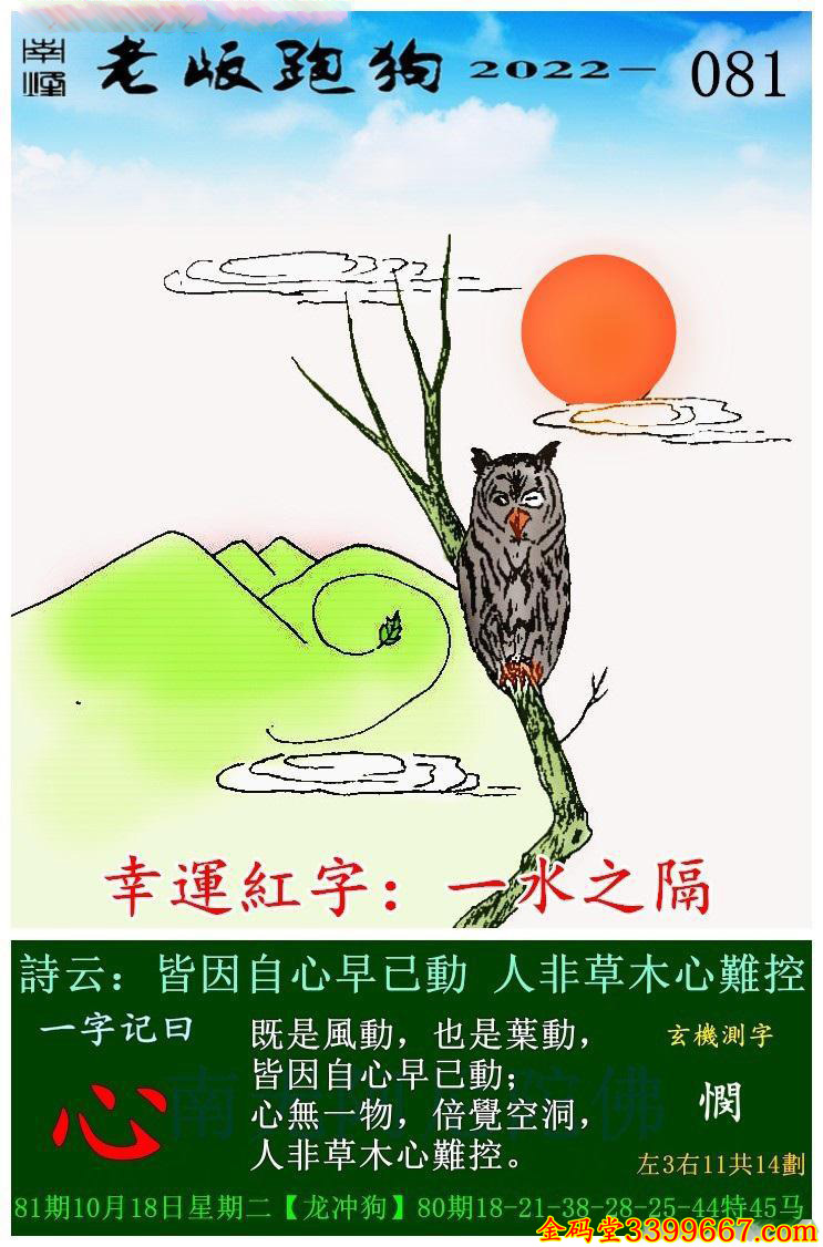 081期老版跑狗一字記之曰:【心】玄機測字:《憫》