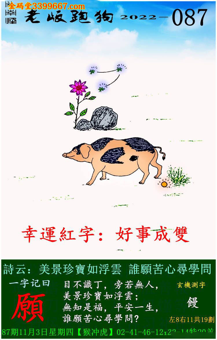 主题 : 087期老版跑狗一字記之曰:【願】玄機測字:《饅》