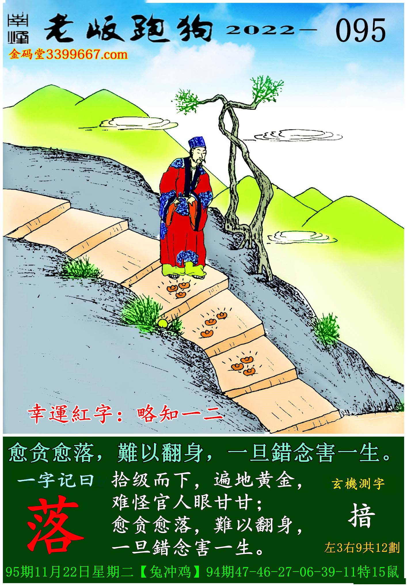 095期老版跑狗一字記之曰:【落】