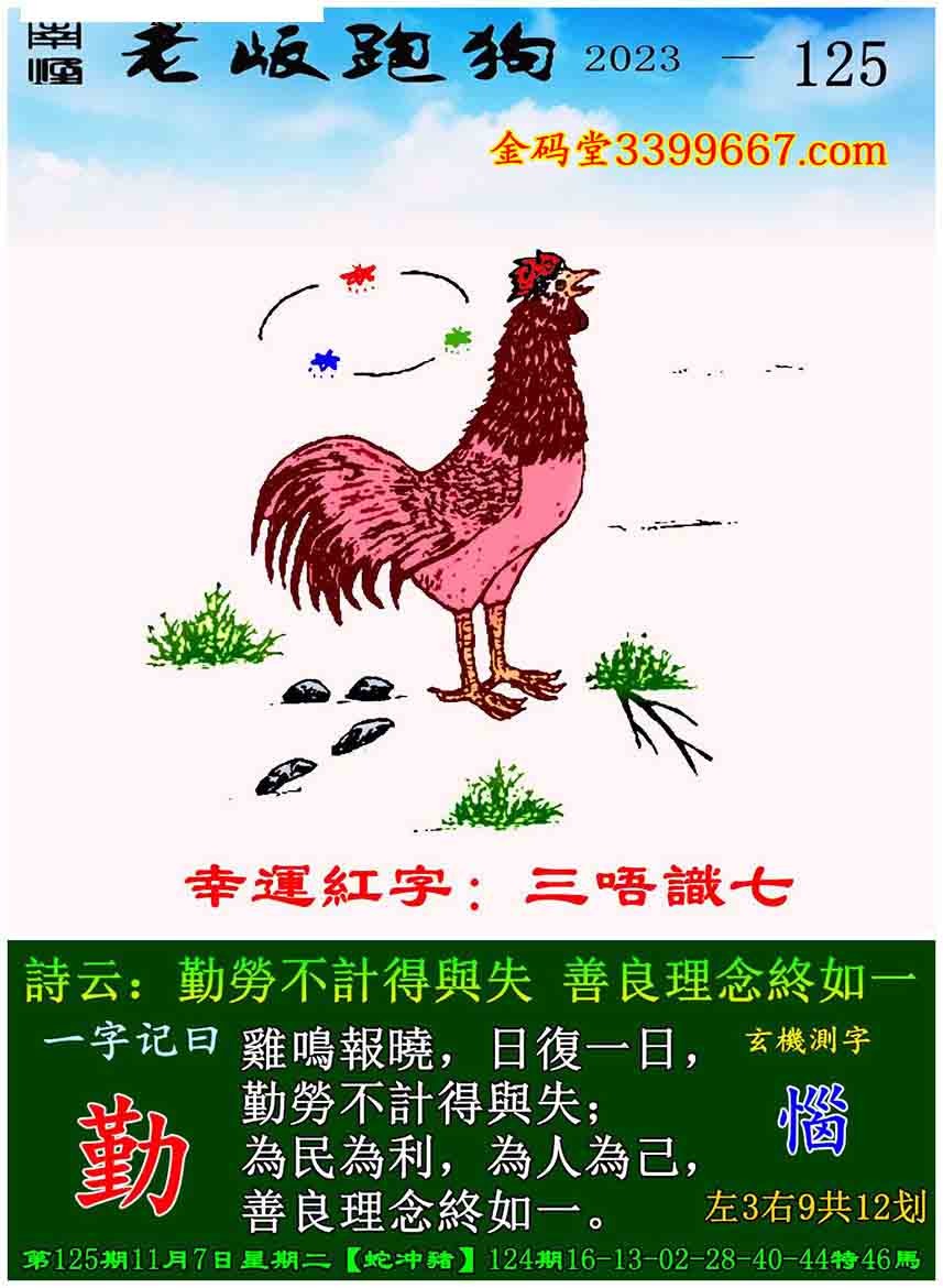 主题 : 125期老版跑狗一字記之曰:【勤】玄機測字:《惱》