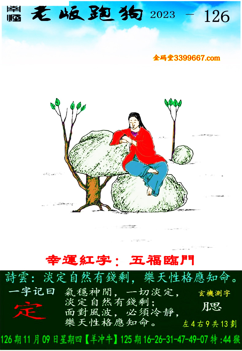 主题 : 126期老版跑狗一字記之曰:【定】玄機測字:《腮》