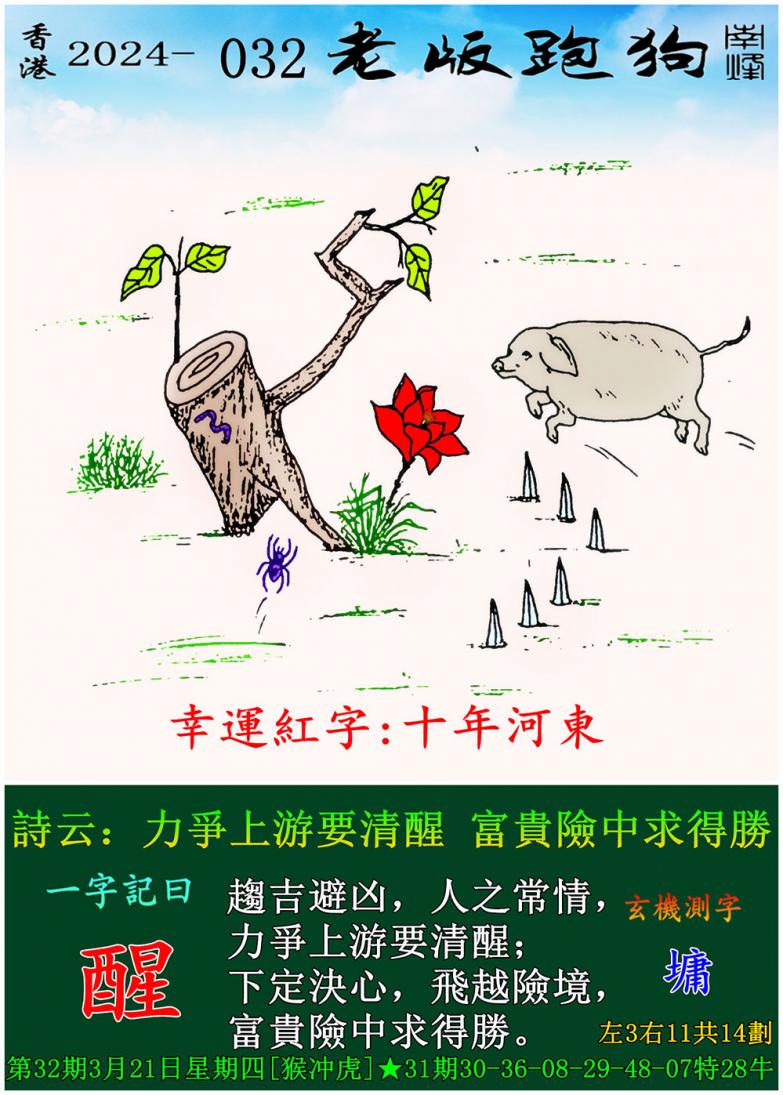 032期老版跑狗一字記之曰:【醒】