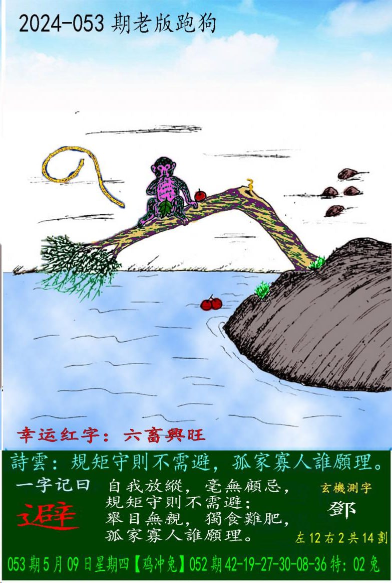 053期老版跑狗一字記之曰:【避】 玄機測字:《鄧》
