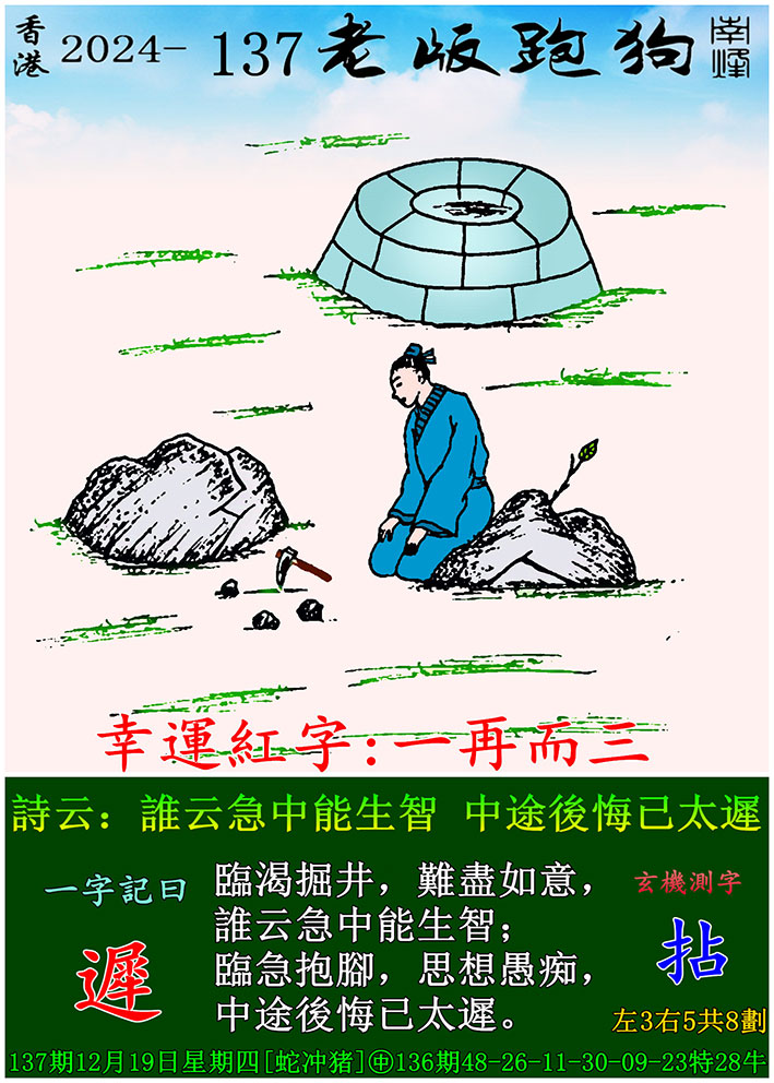 137期老版跑狗一字記之曰:【遲】