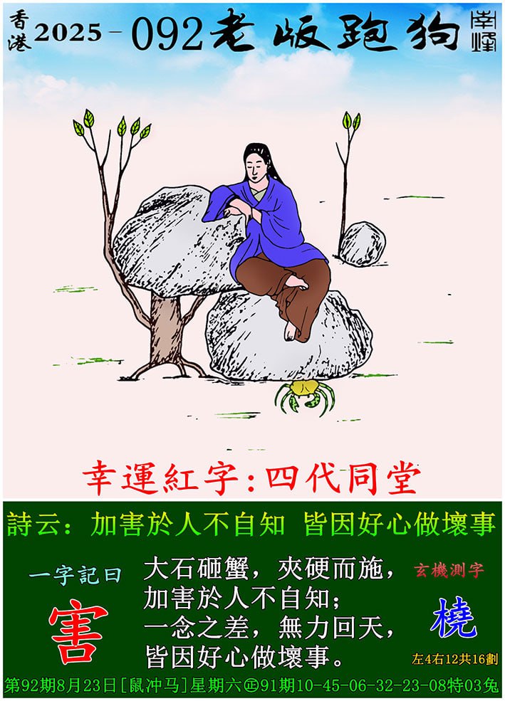 092期老版跑狗一字記之曰:【害】 玄機測字:《橈》