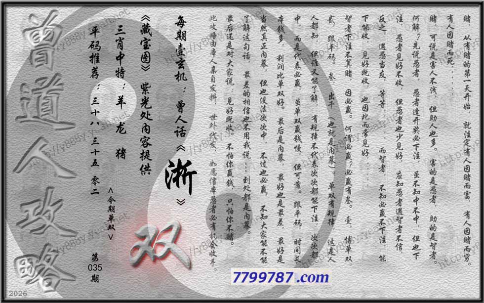 主题 : 035期藏寶圖 新:蕉留庭户因供字 老:日长暗记残香篆 禁:蛇 禁:8尾 玄機字:《渐》
