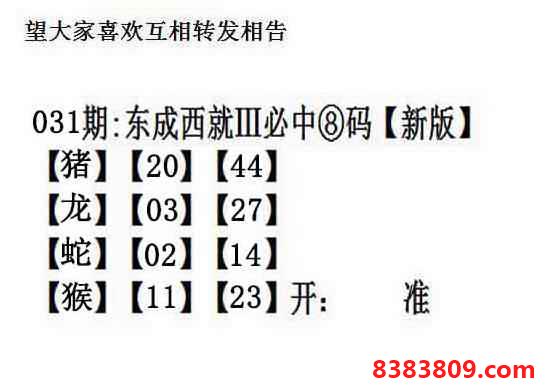 主题 : 031期:另版【东成西就四肖8码】