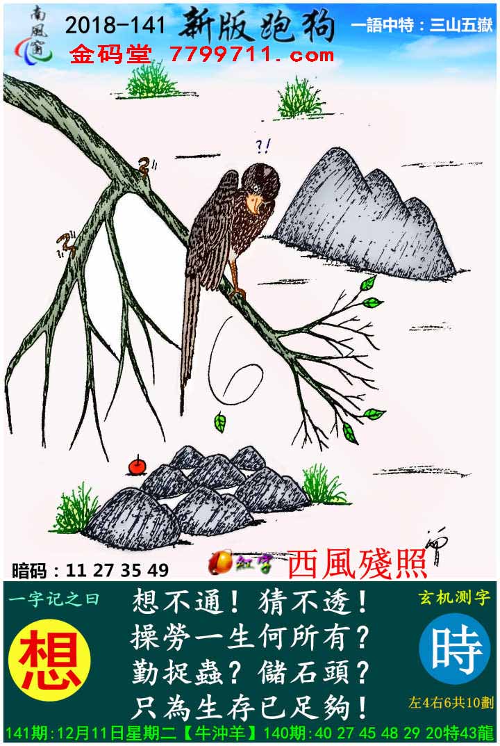 主题 : 141期:新版跑狗一字記之曰【想】玄機測字:《時》